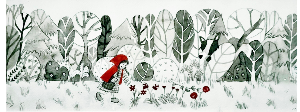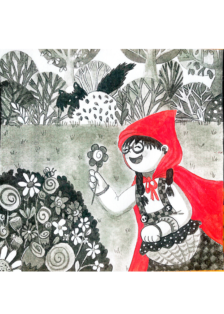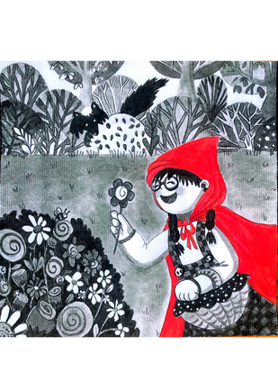 Proyecto pintado con técnica tradicional: aguado y color rojo intenso.