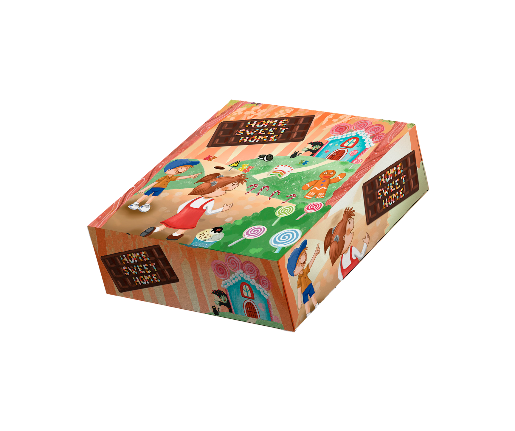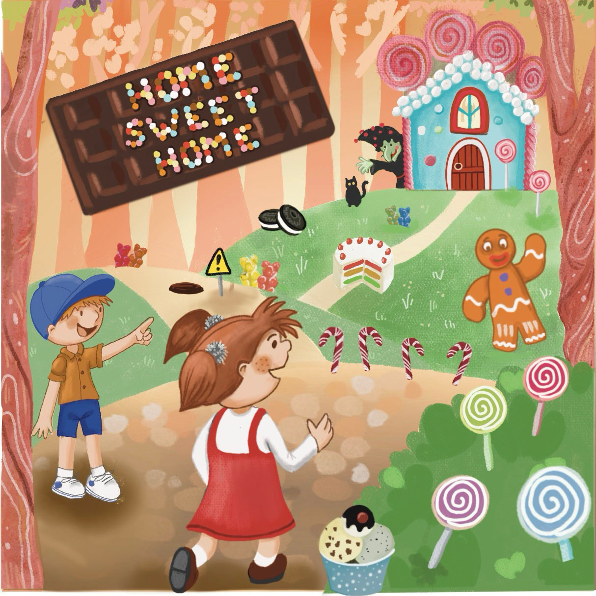 Proyecto de portada para un juego de mesa infantil. Los jugadores deberán pasar por un montón de pruebas antes de llegar a la casa de la bruja.