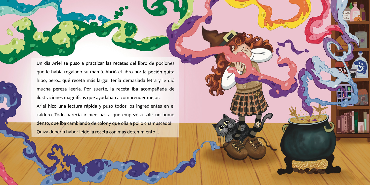 Se narran las aventuras de Ariel, una aprendiz de bruja inquieta y juguetona que tiene una gatita negra de ojos amarillos. Su mamá le da clases de hechizos para que se convierta en una bruja con grandes poderes, pero a ella no le gusta demasiado estudiar, prefiere probar, y eso, a veces, le lleva a tener problemas.